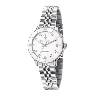 This women’s watch from the Successo Solar collection marks time in style. Steel bracelet, ceramic bezel and crystal indexes make this model feminine and elegant, always keeping its unique bold spirit. The solar movement doesn’t require any battery and it recharges itself with natural and artificial light.